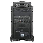 The Galaxy Audio Traveler TV8 Portable Speaker with Built-In Bluetooth with Wheels and a Handle is an AC/battery-operated portable PA system. This compact system features an 8" woofer, 1" horn, 80-watt amplifier, and can be configured in a variety of ways to meet your specific needs. This self-powered portable PA system has a coverage capacity of up to 600 people.