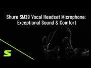 The Shure SM39 Fitness Headset Microphone features a cardioid polar pattern, adjustable boom, and hydrophobic coating, ensuring a secure fit, sweat resistance, and sound isolation indoors and outdoors.
