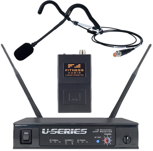 View full detailsThe Fitness Audio U-Series with Aeromic Fitness Headset Microphone is a 16-channel UHF system with NO antenna wire on the body pack! This high-perf...