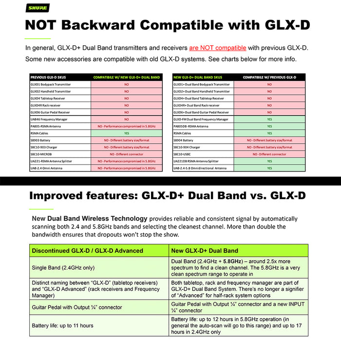 Shure UA8-2.4-5.8 Antenna, 1/2 Wave, 45 DEG, 2.4 & 5.8GHZ
